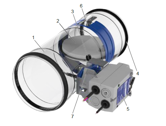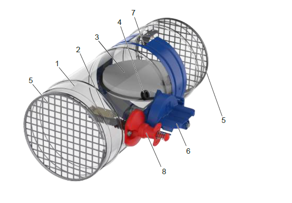 Klappengehäuse aus verzinktem Stahlblech, optional verzinktes Stahlblech mit Pulverbeschichtung RAL 7001 oder Edelstahl 1.4301. Klappenblatt aus Spezial-Isolierstoff, optional mit Imprägnierung. Korrosionsschutz nach DIN EN 15650 in Verbindung mit DIN EN 60068-2-52 nachgewiesen. Die hygienischen Anforderungen gemäß VDI 6022-1, VDI 3803-1, DIN 1946-4, DIN EN 16798-3 sowie der Ö-Norm H 6020 und H 6021 und der SWKI werden erfüllt.