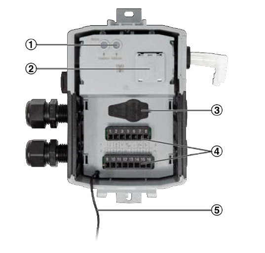 | 1: keine 2: aktiver Sensor (im Hybridbetrieb) 3: passiver Sensor 4: – 5: Schalter Werkseinstellung: keine | – | WR |