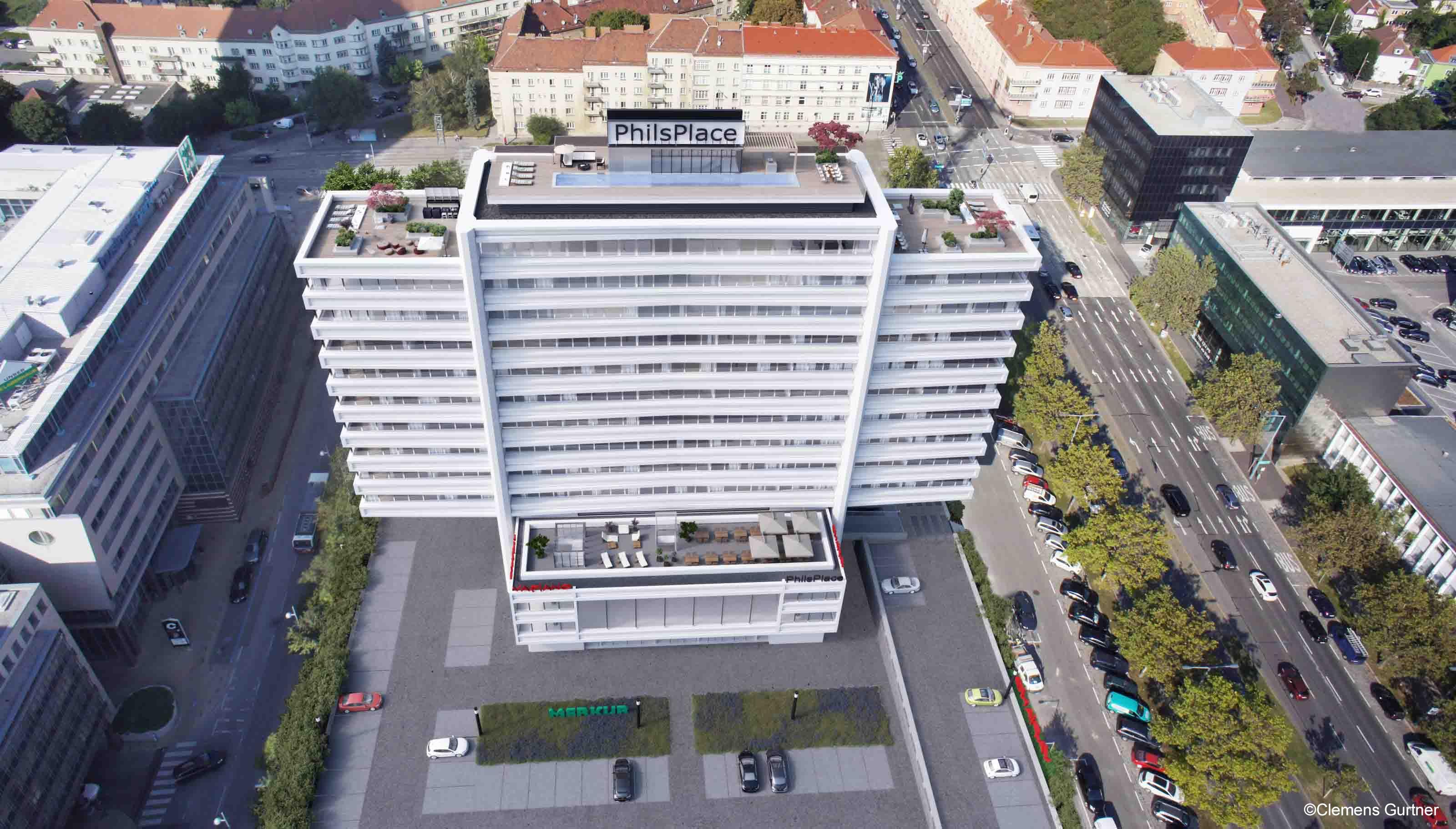Die einmalige Lage am Scheitelpunkt des Wienerbergs machte das berühmte „Philips Haus“ von Anbeginn zu einem weit sichtbaren Wahrzeichen moderner Architektur der europäischen Nachkriegszeit. Im Jahr 1964 nach Plänen des berühmten Architekten Prof. Karl Schwanzer errichtet, diente das zwölfstöckige Gebäude als österreichische Firmenzentrale des Philips-Konzern. Ab Herbst 2018 verwandelte sich das denkmalgeschützte Landmark direkt bei der Wiener-City zu einer luxuriösen Wohnimmobilie. Geboten werden hier Full-Service Apartments, welche Geschäftsleuten für Lang- sowie Kurzaufenthalte kleine, aber sehr hochwertige Wohnungsmöglichkeiten gewähren. Das Wiener Architekturbüro Josef Weichenberger architects + Partner hat die Verwandlung der Büroimmobilie, die nun „Phils Place“ heißt, geplant.